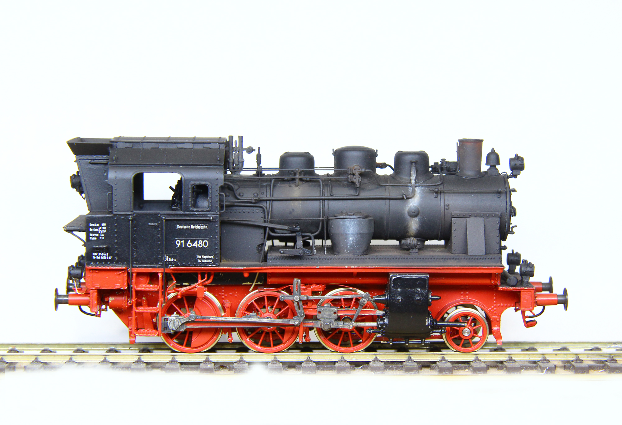 Wenn ein Eisenbahnfreund an die Altmark denkt, fallen ihm Orte wie Salzwedel, Kalbe/Milde oder Klötze ein. Dazu die oftmals aus Triebwagen-Beiwagen gebildeten, von einer 64-er oder eben auch von einer Elna 91-er gezogenen Personenzüge mit Güterbeförderung auf ausgefahrenen Gleisen in Kiesbettung. Das war die Altmark in den 1960-er Jahren. Die zur Nachgestaltung notwendigen Fahrzeuge beschränken sich jedoch neben den entsprechenden Wagen lediglich auf die BR64 oder die ebenfalls hier eingesetzte V15. Die markante 91 64. hingegen gibt es nur als hochwertigen Kleinserienbausatz von Weinert. Das hat allerdings den Vorteil, daß man sich „seine“ Betriebsnummer selbst aussuchen kann. Denn es gab bei diesen Lokomotiven teils sehr markante Unterschiede im Aussehen und der Technik. Das betraf die Bauform des Kessels, seine Ausrüstung mit Speisedom, Vorwärmer und Kolbenspeisepumpe oder auch nur zweidomig mit seitlich angebrachten Speiseventilen und zwei im Führerhaus liegenden Strahlpumpen, die Ausführung des Führerhauses mit Seitenfenstern, Türausschnitten und Dachlüftern, Kohlekasten mit oder ohne Aufsatz, eine Pulsometeranlage zum Wassernehmen unterwegs ohne Wasserkran, unterschiedliche Laternenbauarten auf den Pufferbohlen oder auch diverse Einlauftrichter auf dem Wasserkasten. Nicht zu vergessen ist auch die Unterscheidung in Elna2 oder Elna5, was wiederum durch die schwerere Bauart und den größeren Kesseldurchmesser deutlich wird und nicht immer gleich anhand der Betriebsnummer erkennbar ist. Das sind jedoch längst nicht alle Unterschiede.  Man merkt hier jedoch bereits, daß die Umsetzung eines vorbildgetreuen Modelles dieser Loktype schwierig für unsere Modellbahnhersteller wird. Möchte man eine oder auch mehrere Lokomotiven dieser markanten Baureihe sein Eigen nennen, muß man  selbst aktiv werden oder sich an einen professionellen Modellbauer wenden, der ihm beim Bau eines entsprechenden Modelles zur Seite steht.  Die folgenden Bilder entstanden bei der Umsetzung der 91 6480 vom Bw Salzwedel aus dem Weinertbausatz 4293 der Elna2. Grundlage waren einige Fotos von Hans Müller, der diese Lok in der Altmark antraf und den dortigen Betrieb in seinen legendären Bildbänden für die Nachwelt dokumentiert hat.
